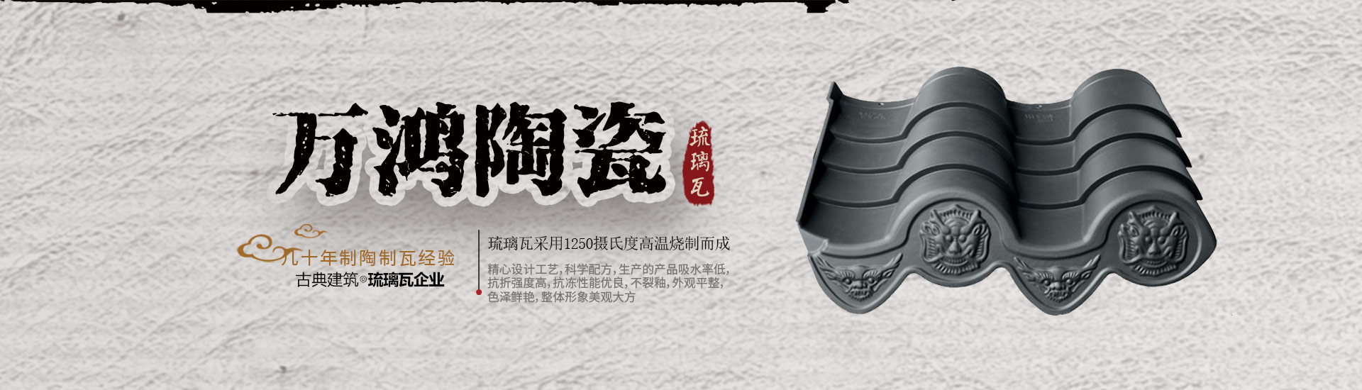 宜興市萬鴻陶瓷有限公司是國(guó)內(nèi)生產(chǎn)古建琉璃瓦企業(yè),也是宜興市琉璃瓦行業(yè)龍頭骨干企業(yè)。琉璃瓦采用1250攝氏度高溫?zé)贫桑咀浣?jīng)濟(jì)發(fā)達(dá)的宜興市丁山鎮(zhèn),臨近寧杭高速公路、新長(zhǎng)鐵路、錫宜高速和104國(guó)道,交通十分便利。 萬鴻陶瓷擁有幾十...